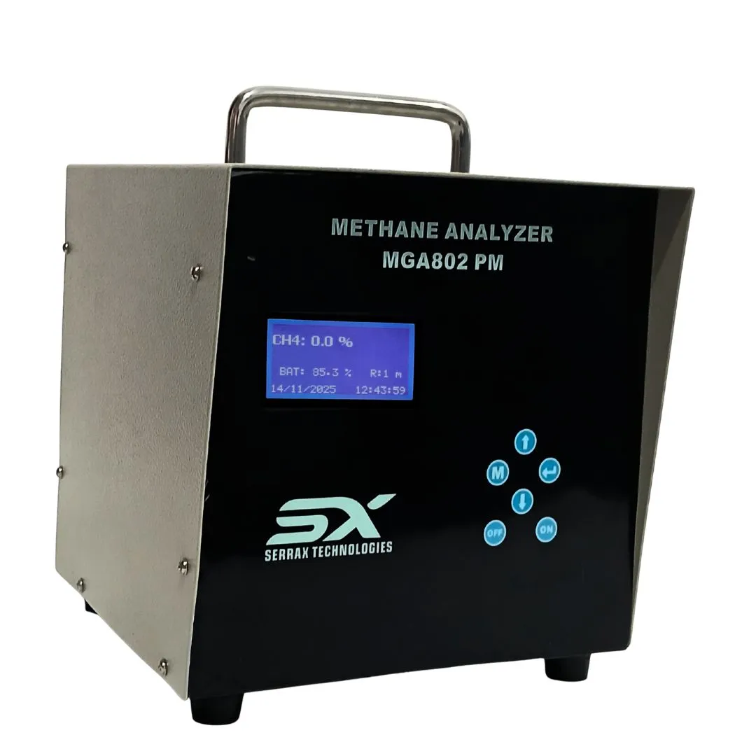 Serrax NDIR Methane Analyzer is a rugged, portable methane detector built for accurate field and plant-level monitoring. Powered by a non-dispersive infrared (NDIR) sensor, it delivers reliable, repeatable methane readings across two industry-useful ranges (low % and full-scale 0–100%) with rapid response time for real-time decisions. Housed in a compact 2.5 kg body with an in-built LCD that refreshes every second, this unit combines laboratory-grade measurement performance with true on-site usability.